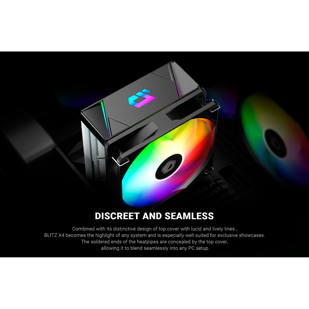BLITZ X4 оснащений чотирма тепловими трубками діаметром 6 мм, які мають технологію Heat pipe Direct Touch. Ця інновація є ключовою для його виняткової ефективності охолодження, оскільки вони передають тепло безпосередньо в оптимальні місця на охолоджувальних ребрах. Завдяки своїй тонкій конструкції товщиною 46 мм він економить простір і забезпечує легкий доступ до банків оперативної пам’яті навіть у тісних межах, доступних деяким компактним корпусам ПК.