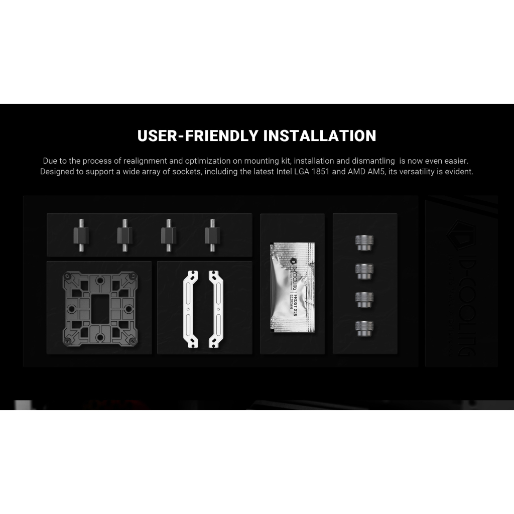 Завдяки процесу переналагодження та оптимізації монтажного комплекту встановлення та демонтаж тепер ще простіше. Цей кулер розроблений для підтримки широкого спектра роз’ємів, включаючи останні Intel LGA 1851 і AMD AM5.