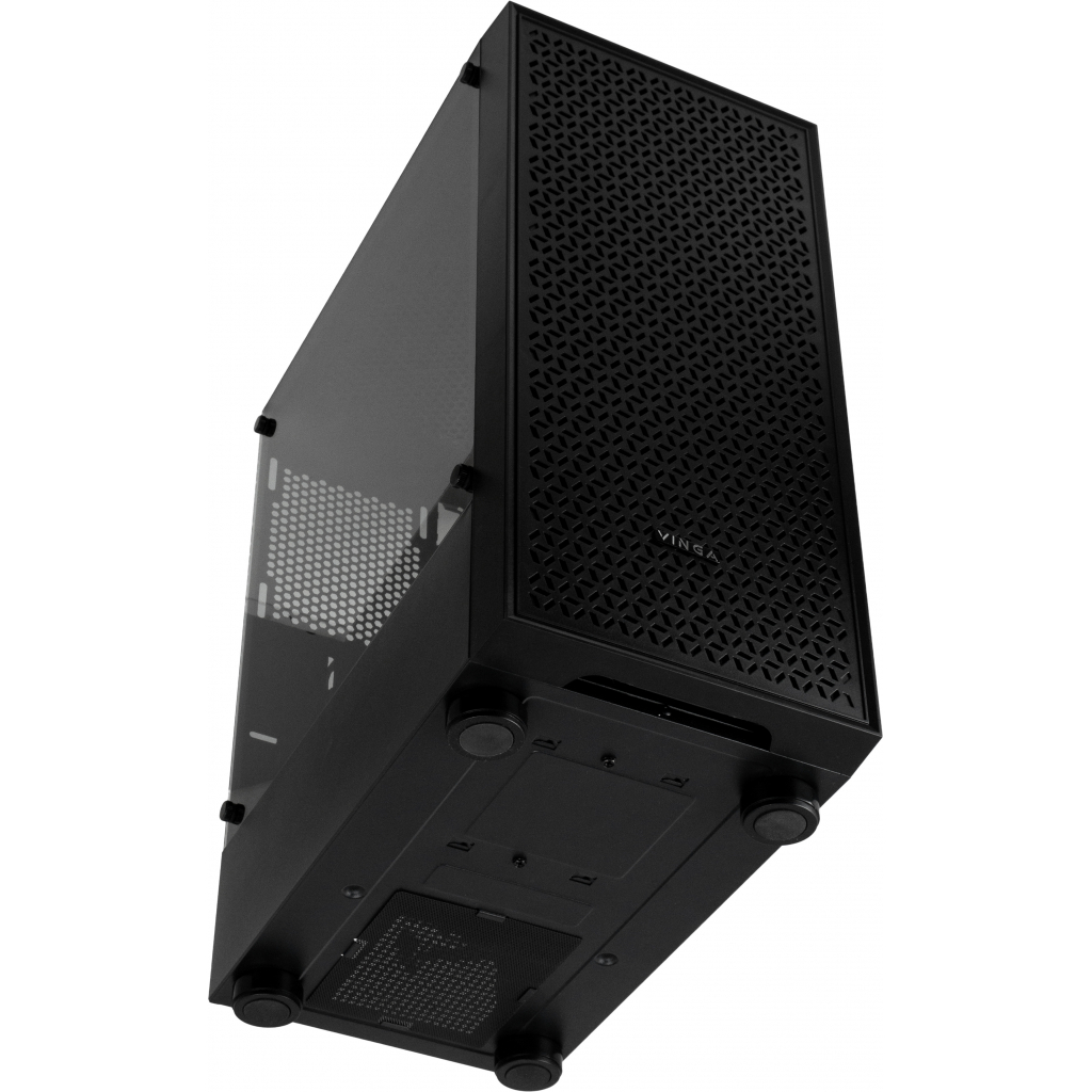 Корпус Vinga Ghost позволит сконструировать неплохой геймерский компьютер: система вентиляции с вентиляционными решётками обеспечивает нормальный температурный режим даже при полной загрузке. У корпуса есть боковой панели из закаленного стекла – она прозрачна, поэтому пользователь может увидеть, как работает «начинка» корпуса. Место для блока питания находится на дне корпуса, это помогает погасить вибрацию и сделать уровень шума ниже даже при полной нагрузке. На корпусе расположены кнопки управления питанием и загрузкой системы, а также входы для наушников, USB-порты и входы для микрофона. Максимально допустимый размер карт для установки – до 310 мм, максимально приемлемая высота кулера – 159 мм.