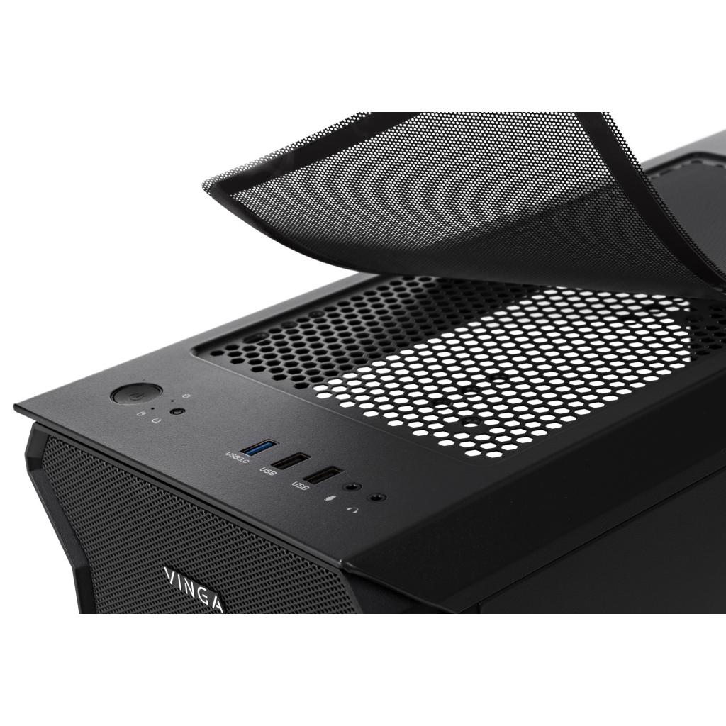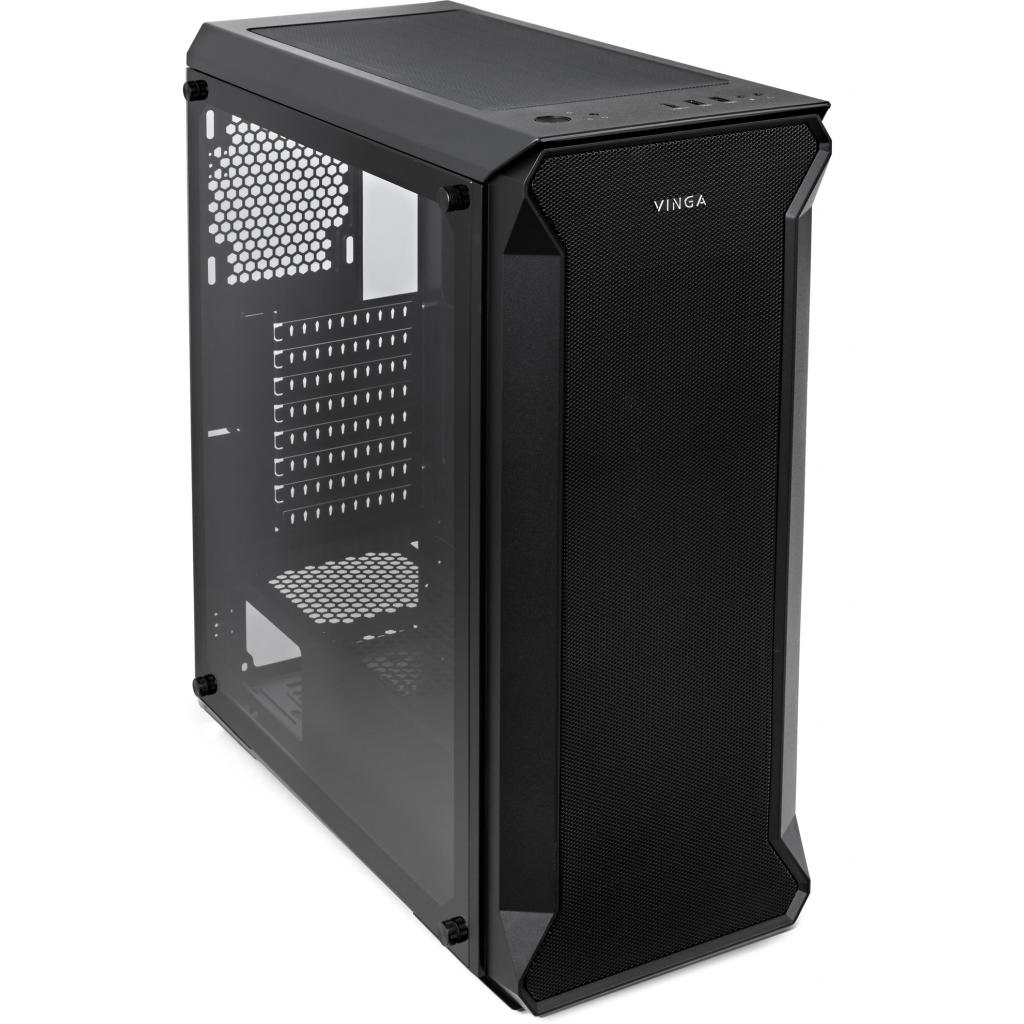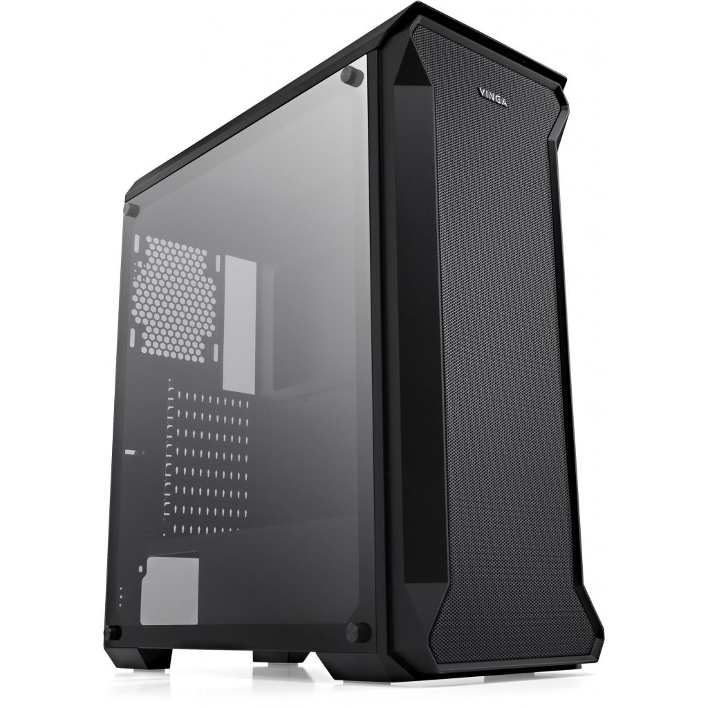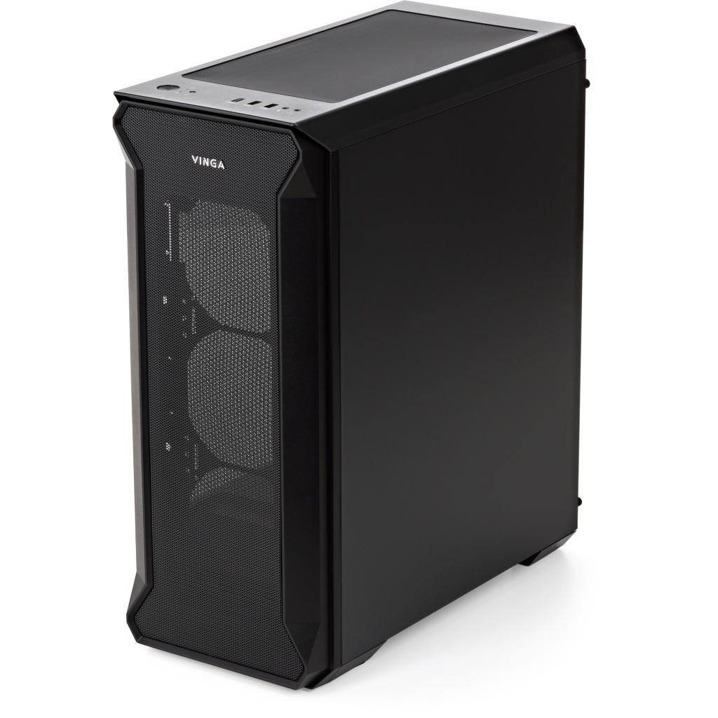Корпус Vinga Tank дозволить сконструювати непоганий геймерський комп'ютер: система вентиляції з вентиляційними гратами забезпечує нормальний температурний режим навіть при повному завантаженні. У корпусу є бічній панелі з загартованого скла - вона прозора, тому користувач може побачити, як працює «начинка» корпусу. Місце для блоку живлення знаходиться на дні корпусу, це допомагає погасити вібрацію і зробити рівень шуму нижче навіть при повному навантаженні. На корпусі розташовані кнопки управління живленням і завантаженням системи, а також входи для навушників, USB-порти і входи для мікрофона. Максимально допустимий розмір карт для установки - до 380 мм, максимально прийнятна висота кулера - 165 мм.
