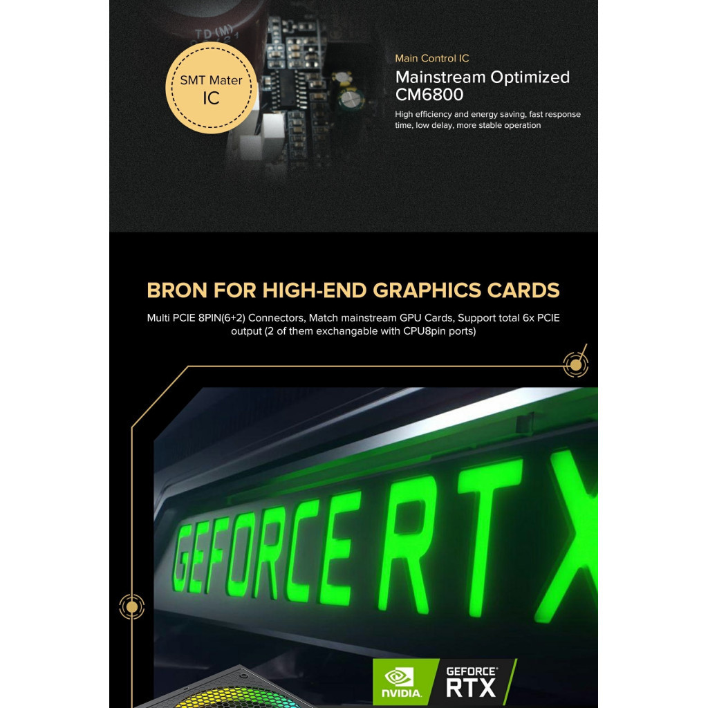 • Вихід і захист: Потужні окремі шини +12 В забезпечують стабільний вихід постійного струму і підтримують високопродуктивні відеокарти та комп'ютерні системи. Відмінні конденсатори забезпечують стабільність, довговічність і надійність, електричний захист OPP/OVP/UVP/SCP/OCP включено.